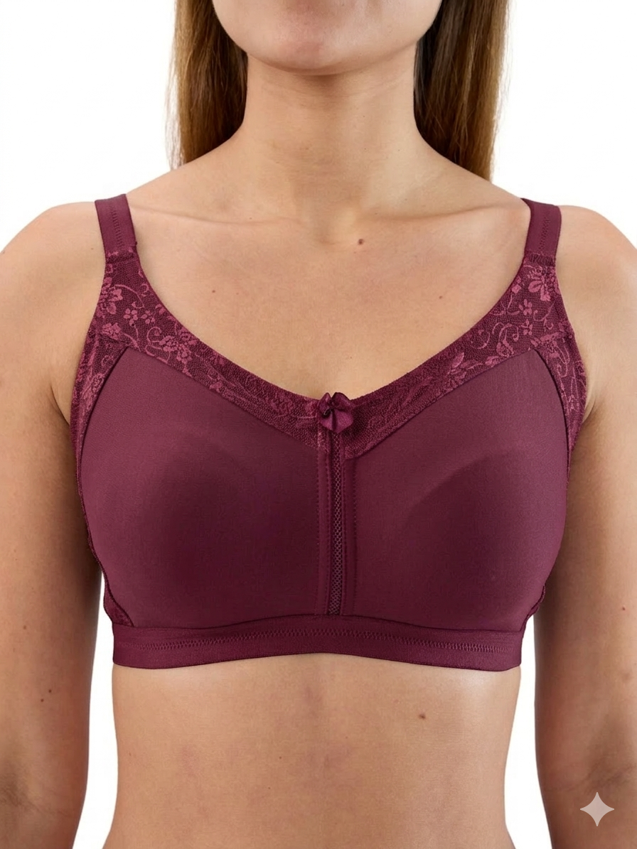 This bra features a Non-Padded, Non-Wired design for natural shape and all-day comfort. The molded cups provide smooth support and a seamless look under clothing, while the full-coverage fit offers excellent hold and confidence. Crafted with soft, breathable fabric, it ensures comfort, durability, and a perfect everyday fit.