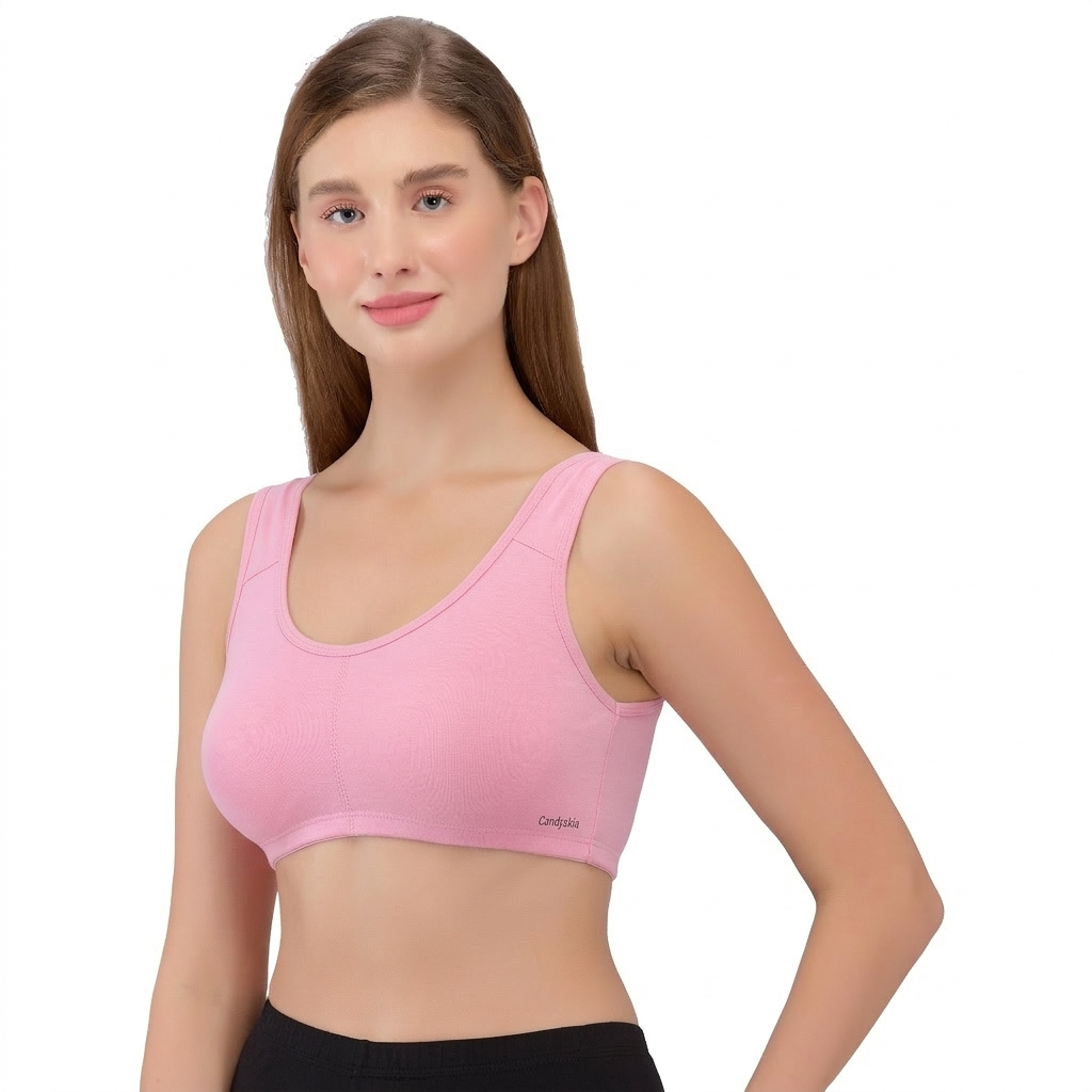 Designed for everyday workouts, Candyskin's sports bra features a super soft elastic band under the bust. This non-wired sports bra includes removable padding, offering flexibility to convert from padded to non-padded as needed. It provides full coverage and ensures complete support during activities.
