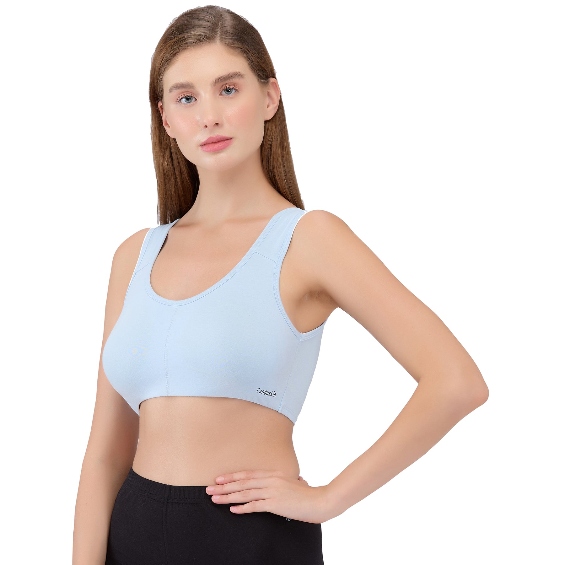 Designed for everyday workouts, Candyskin's sports bra features a super soft elastic band under the bust. This non-wired sports bra includes removable padding, offering flexibility to convert from padded to non-padded as needed. It provides full coverage and ensures complete support during activities.